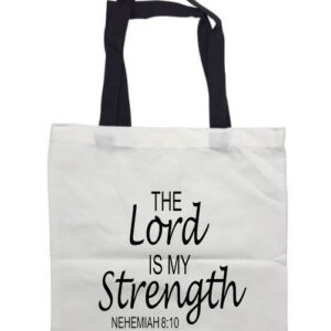 The Lord is my Strength Black Handle Tote Bag