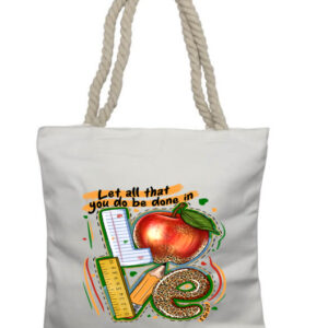 Teacher Let all be done in Love Rope Tote Bag