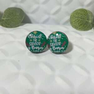 Stud Christmas Christ the Savior is Born Green